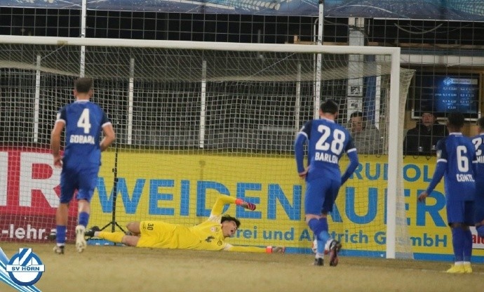 奧地利乙級(jí)聯(lián)賽,效力于霍恩隊(duì)的三鎮(zhèn)青訓(xùn)門將劉邵子洋首發(fā)出場(chǎng)