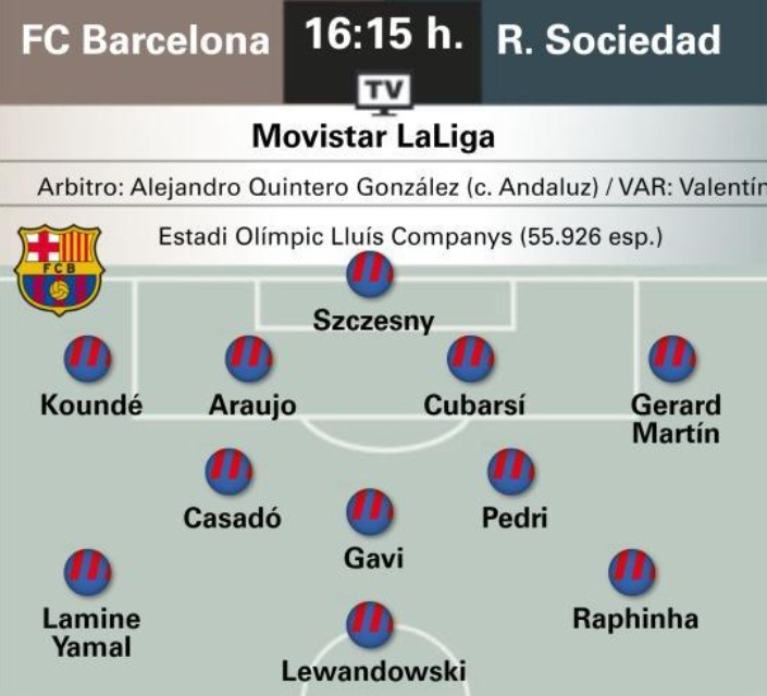 世體預測巴薩首發(fā):巴爾德輪休,馬丁、阿勞霍、卡薩多出戰(zhàn)