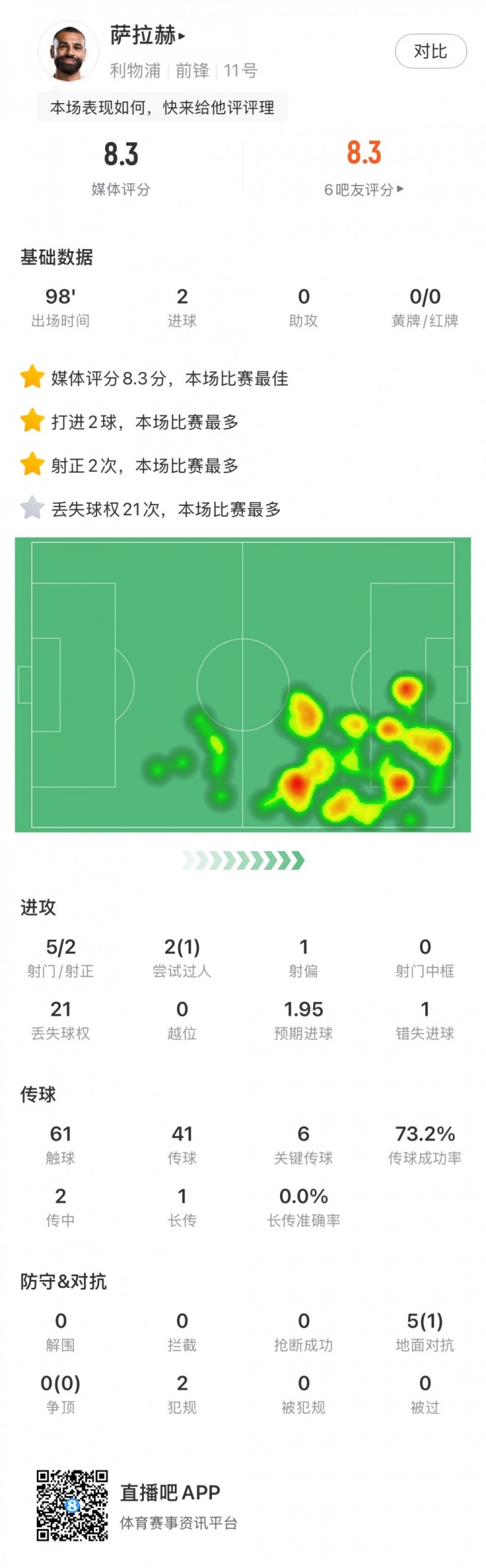 預(yù)期進(jìn)球1.95,錯失進(jìn)球1次