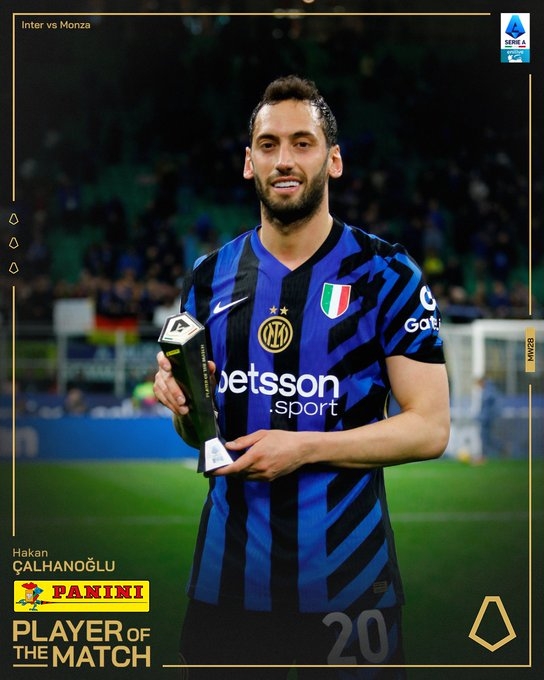 3月9日訊 國米在本輪意甲3-2逆轉(zhuǎn)蒙扎,恰爾汗奧盧在賽后被意甲官方評為全場最佳球員。