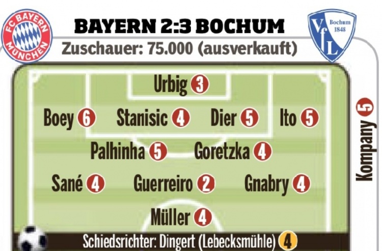 3月9日訊 拜仁在本輪德甲2-3被波鴻逆轉(zhuǎn),《圖片報(bào)》在賽后按照慣例進(jìn)行了評分,博伊被打出象征災(zāi)難級的6分。