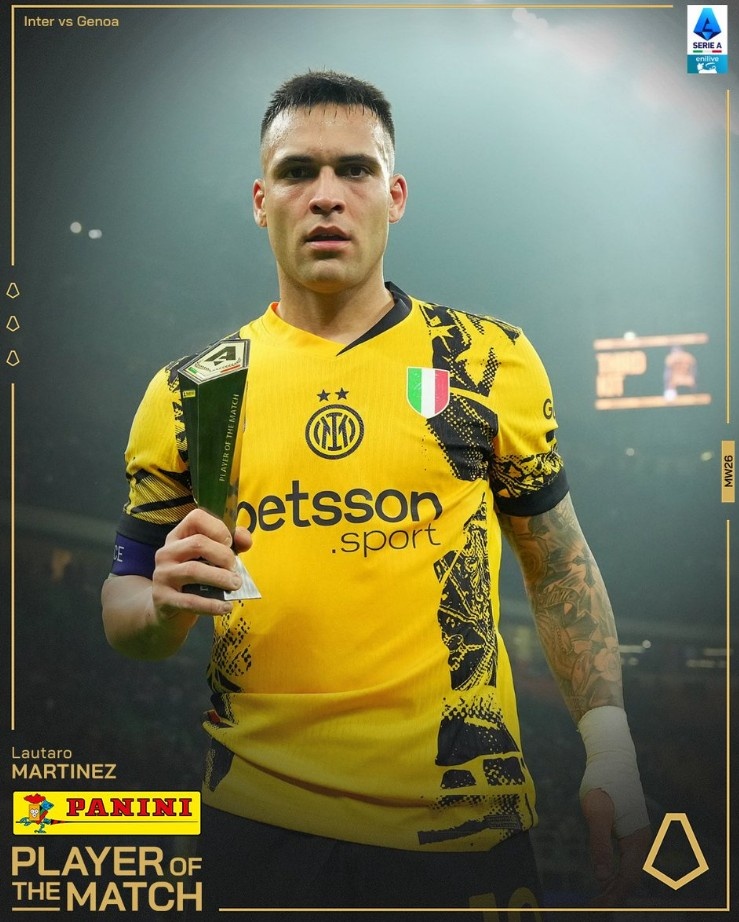 打進(jìn)制勝球!意甲官方:勞塔羅當(dāng)選國(guó)米1-0熱那亞全場(chǎng)最佳球員
