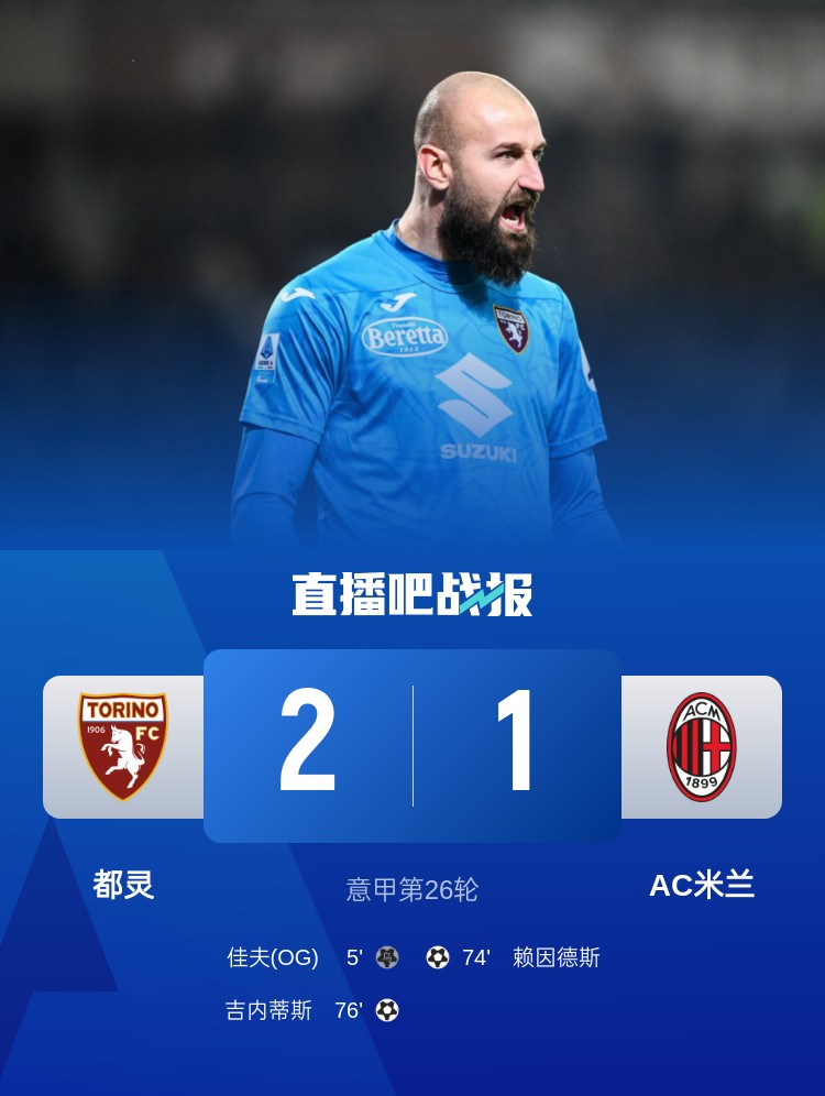 意甲第26輪,AC米蘭客場(chǎng)1-2不敵都靈,佳夫?yàn)觚埱?,都靈門將瓦尼亞發(fā)揮出色。