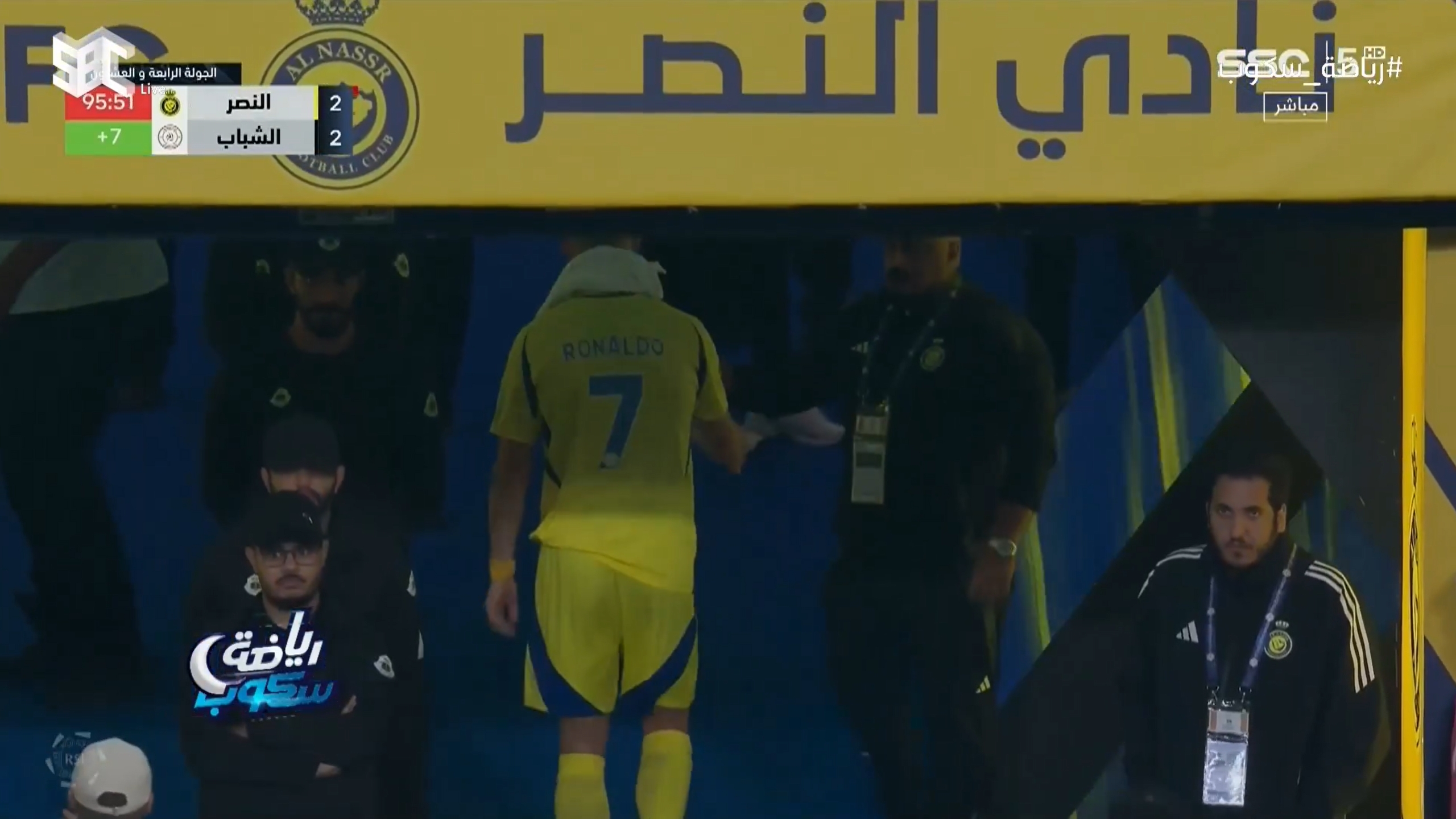 第24輪沙特聯(lián),C羅在上半場補(bǔ)時第7分鐘破門并在第第71分鐘被換下。但電視鏡頭捕捉到C羅在球隊被2-2扳平后的憤怒畫面,并且他選擇在終場哨聲吹響前提前走向球員通道。